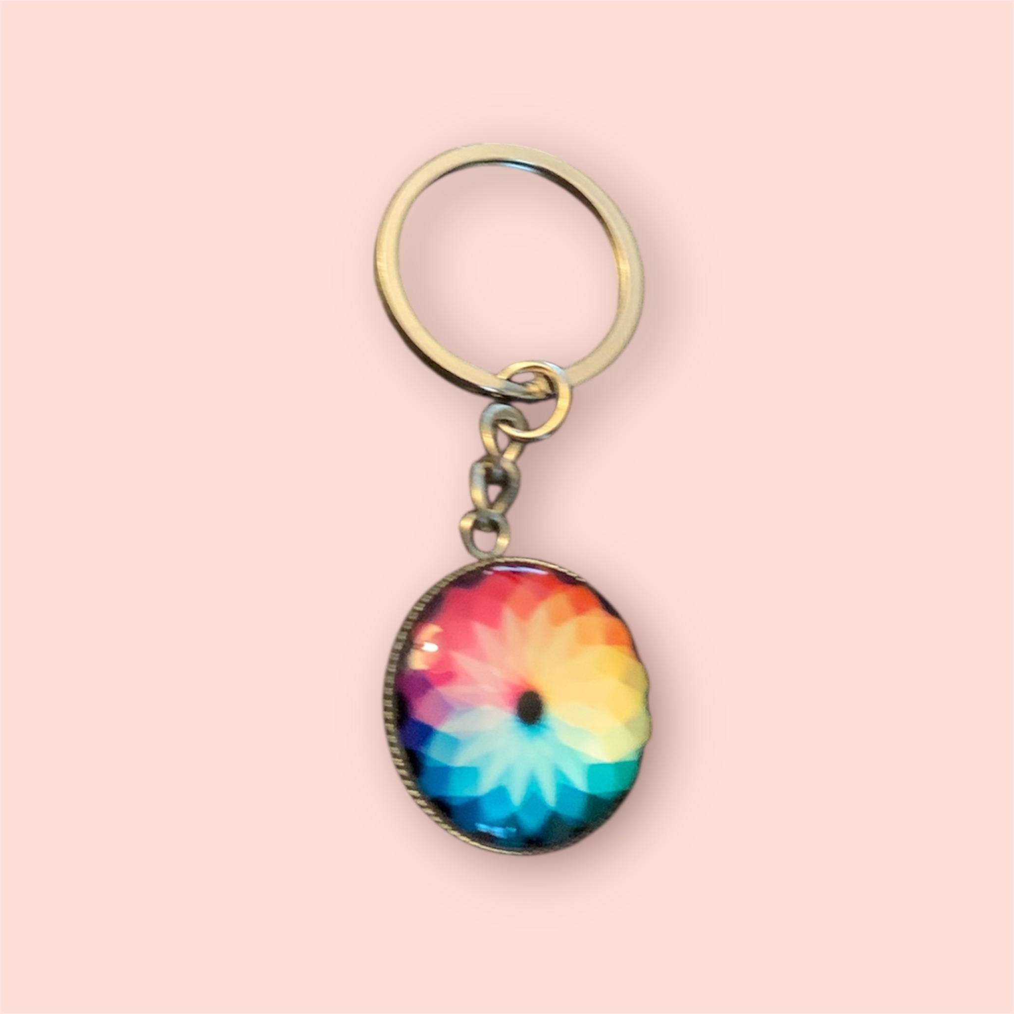 With an abstract view of a flower this half glass inlay has a relaxed vibe to it. Set in a metal housing.