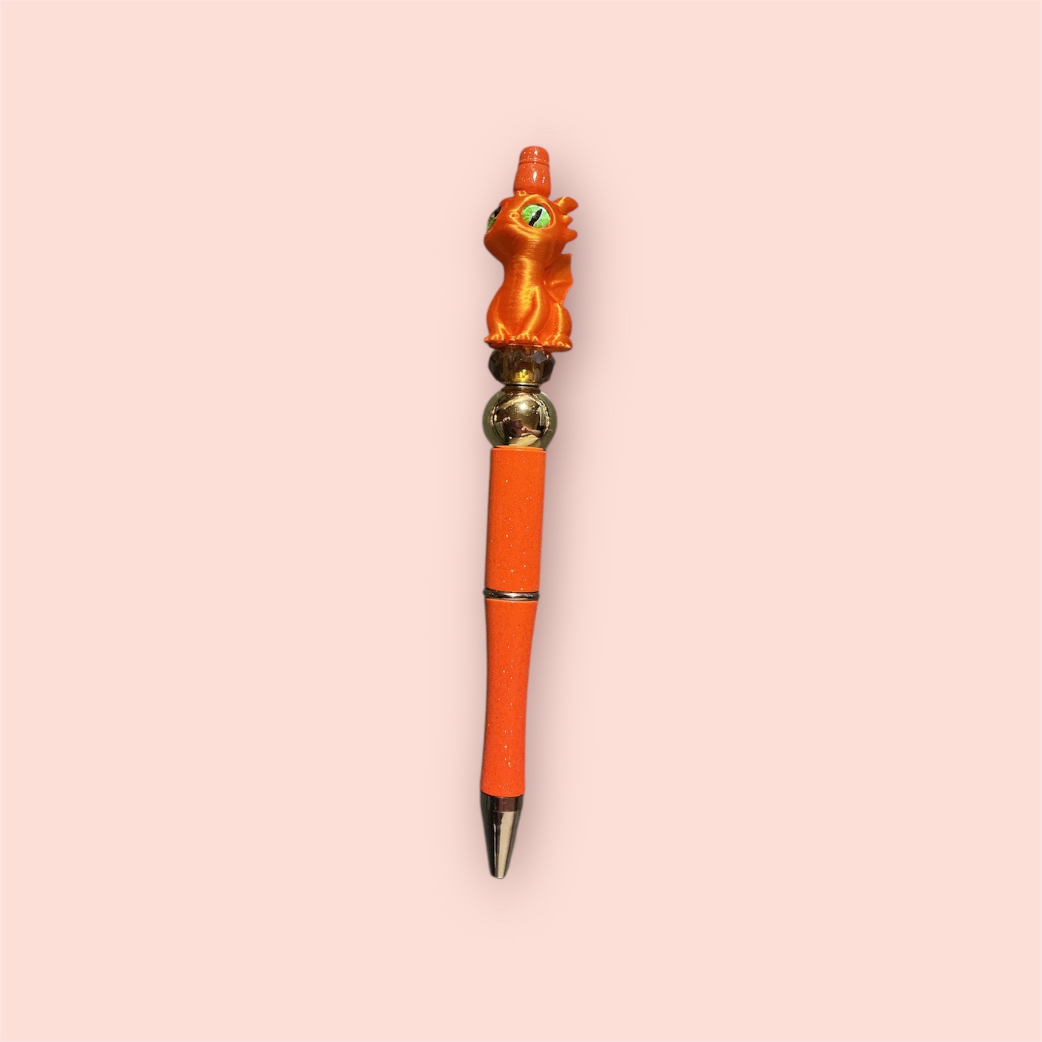 With a large dragon resin bead, a metallic resin bead and a glass bead, this is a fun little pen. Resin he’s to keep the pen lightweight and balanced.
