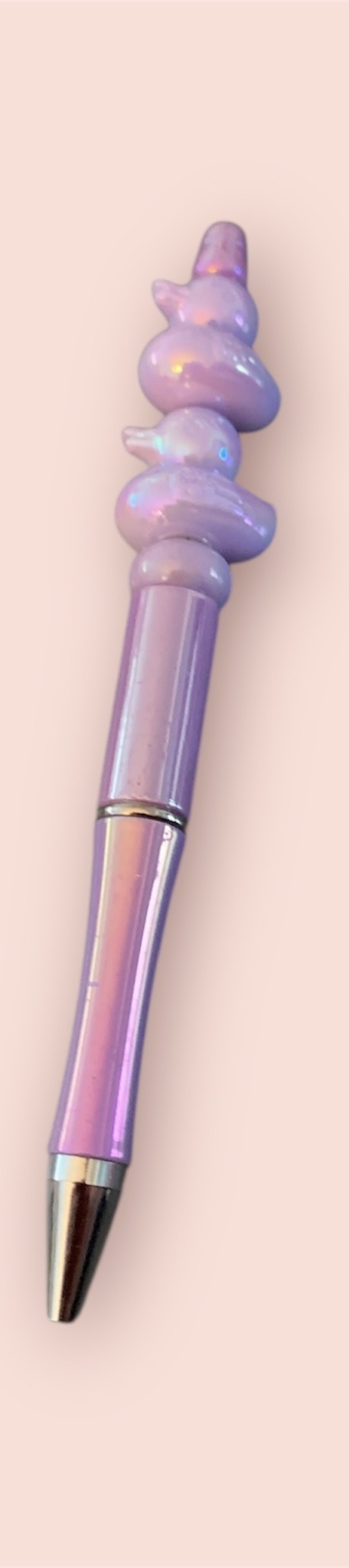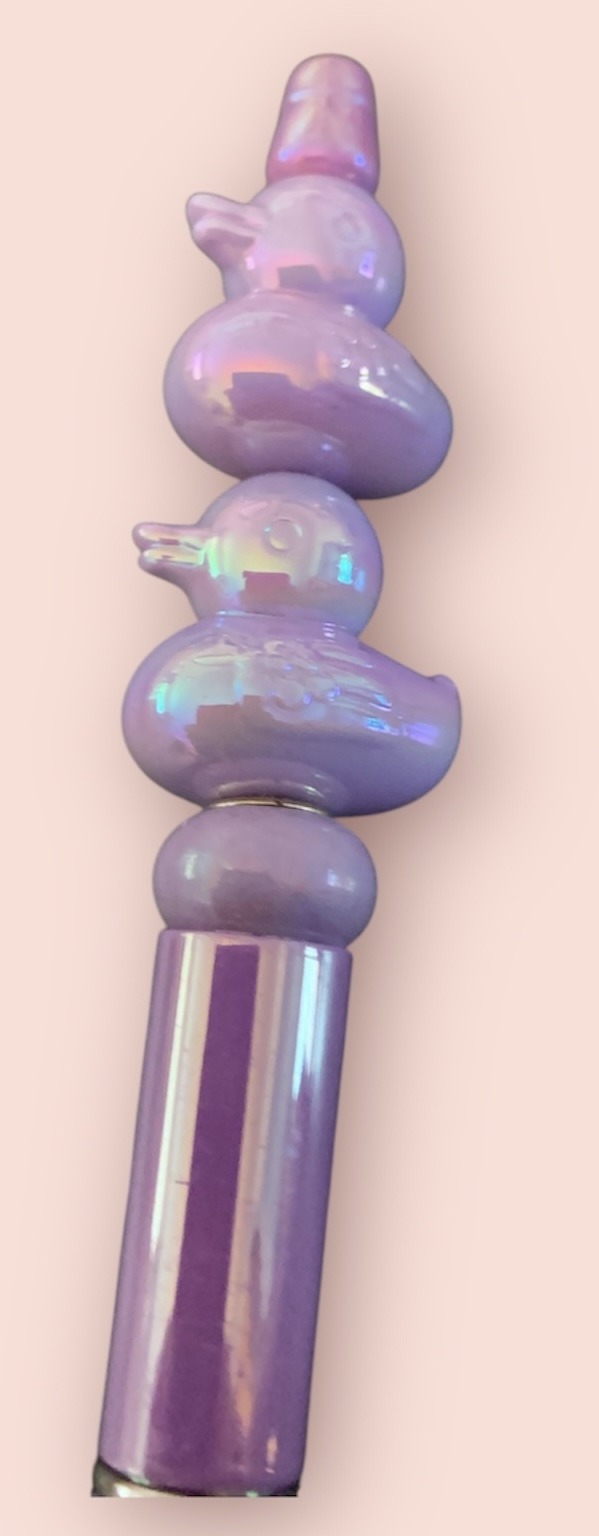 A super cute pen, featuring resin duck focus beads. To operate, twist the bottom section of the pen.